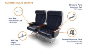 Aircraft interior components supplied by Expromet include parts for both Economy Class Seating and Business Class Seating, such as: